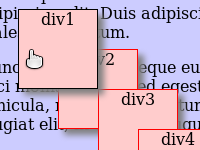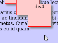 Asettele pienet laatikot limittäin, kuten edellisessä tehtävässä, mutta muuta niiden päälekkäisyyden järjestystä css:llä niin, että laatikko 2 on päällimmäisenä ja laatikko 4 alimmaisena. (Älä muuta html-tiedostoa.)